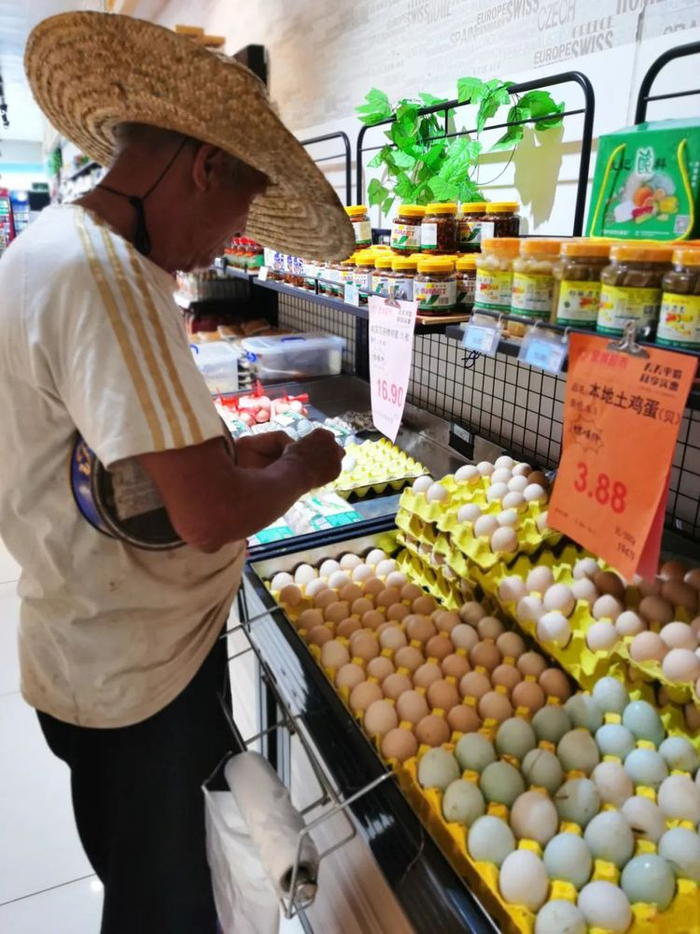 市民在细心挑选蛋类。