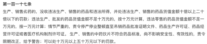 根据新修订《药品管理法》第一百一十七条规定,若生产、销售劣药,对于药品生产企业、批发企业和零售药店而言,处罚都是非常重的。