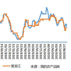 供应来看,根据我的农产品网对全国66家玉米淀粉企业调查数据显示,第39周玉米淀粉企业开机率继续下调,黑龙江地区开工率下调明显,华北地区部分深加工企业开工率上调,整体呈下调趋势。