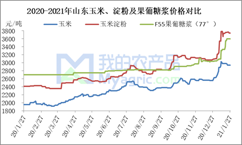 图1 山东玉米、淀粉及果葡糖浆价格对比