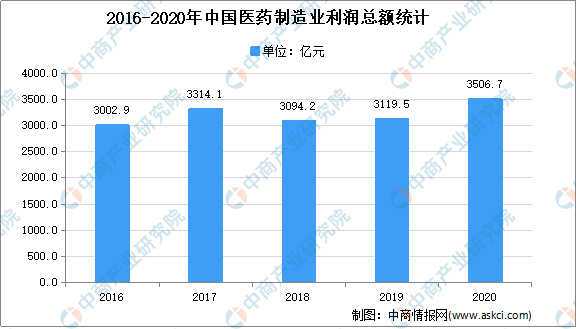 我国医药企业发展整体趋势由快速增长到趋于稳定。2015-2019年,我国工业规模以上医药制造企业利润总额稳步增长,由2627.3亿元上升至3119.5亿元。数据显示:2020年我国工业规模以上医药制造企业利润总额达3506.7亿元,同比增长12.8%。