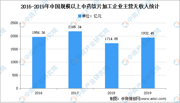 受益于产业政策的大力支持、国家炮制标准的逐步完善、GMP管理规范的持续实施、饮片包装管理的逐步推行等因素的影响,行业整体的发展不断规范,市场环境逐步改善,行业集中度和技术水平不断提高,保持良好的发展态势。数据显示,2019年我国规模以上医药工业企业实现中药饮片加工主营业务收入1932.5亿元,同比下滑4.5%;实现利润总额162.8亿元,同比下滑25.5%。
