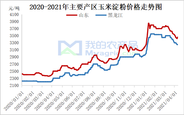 导语:自3月以来,玉米淀粉价格跌跌不休;截止4月26日当日,全国玉米淀粉均价为3425元/吨,较3月初下跌300元/吨,跌幅达8.1%。与此同时,玉米淀粉库存行业库存高企,库存压力持续压制市场,玉米淀粉市场各主体情绪偏悲观。