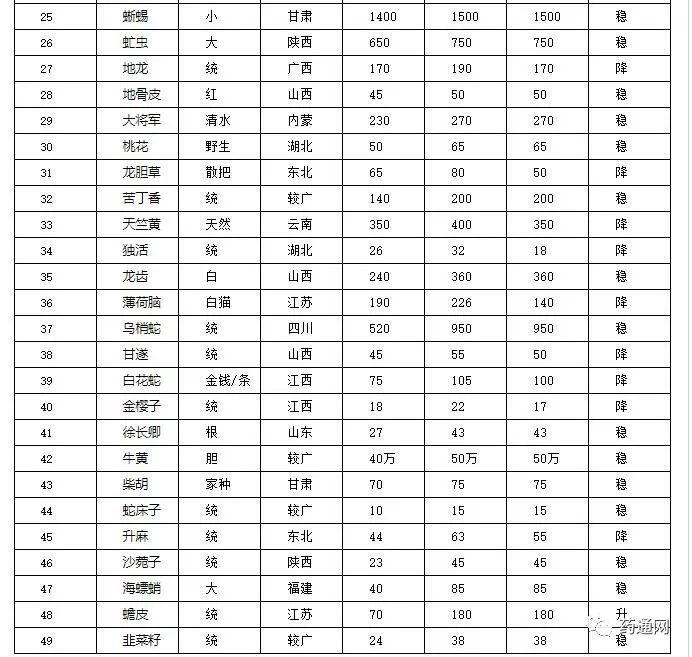 亳州药市上市品种有2600多种,常用药材有500余种。从过去一年涨价的比例看,不过有100多种,占比例5%左右。