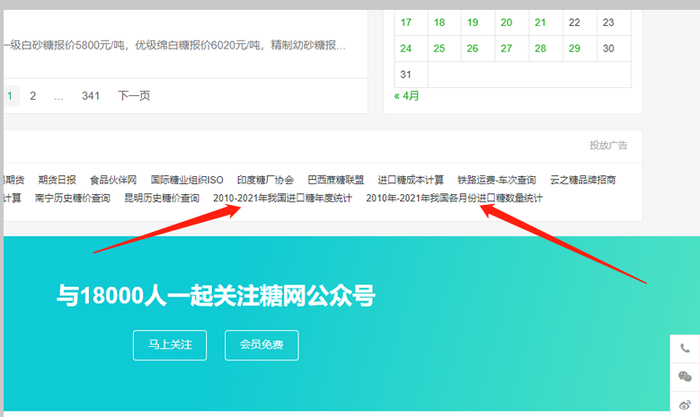 近期YNTW.COM糖网新增加了2010年–2021年中国进口糖年度统计,以及各月份进口糖数量统计,通过糖网首页底部的链接即可进入查阅: