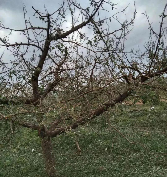 冰雹过后,果树受损,应及时采取应对措施,确保树体正常生长,确保今年的经济效益。