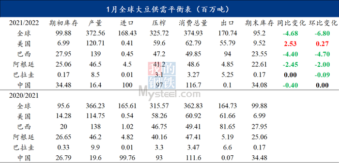 原标题:Mysteel解读:1月USDA供需报告解读及后期豆粕看法 来源:我的农产品网