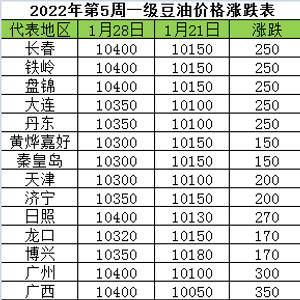 本周油脂期现货继续上涨,棕榈油价格涨幅大于豆油,豆棕期现货价差倒挂幅度扩大,外围市场,美国豆油和国际原油期货飙升,提振马来西亚毛棕榈油市场不断创历史新高,目前马来西亚棕榈种植园依然面临劳动力短缺的问题,马来西亚半岛爆发洪水影响油棕果收获和运输,这意味着棕榈油生产继续受限。此外印尼强制要求食用油出口商必须在国内销售一定数量的食用油,南美天气忧虑加剧,美豆类强劲上涨。在外盘上涨带动下,国内连棕连豆油持续走高,现货跟盘上行,豆棕价差进一步拉大,不过春节在即,市场交易很少,本周豆油库存增加,棕榈油因到船少,库存继续下降,一豆现货跟盘上涨250元/吨左右,24度涨500元,春节临近,多地进入假期模式。周五沿海主要地区油厂一豆价格在10300-10400元,24度棕榈油主流报价11100-11200元,豆棕现货价差为-800元/吨。