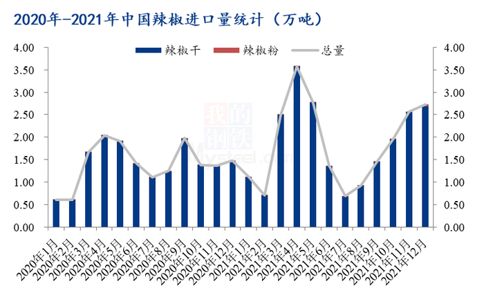 原标题:Mysteel解读:2021年12月辣椒进口数据分析 来源:我的农产品网