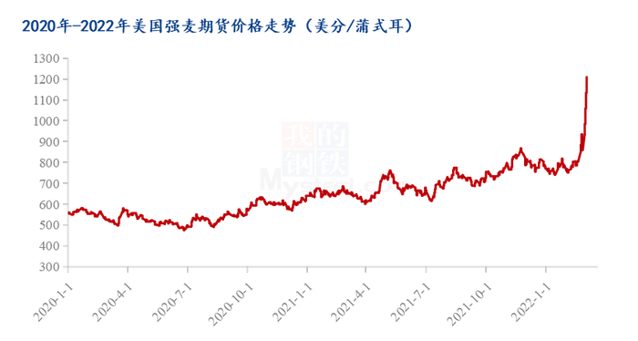 自俄乌2月24日爆发冲突以来,CBOT小麦价格涨幅高达40%。截至3月5日凌晨收盘,CBOT小麦年内涨幅高达56.86%。美国和加拿大遭遇干旱天气,欧洲去年收获季节遭遇多雨天气,令全球主要出口国供应下降,提振麦价走高。国际小麦价格呈现涨势。