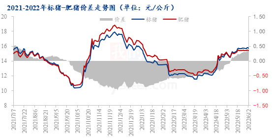 第二,气温升高,肥猪价格优势消失,养殖端压栏惜售情绪减弱,难以支撑价格持续走高。市场标猪价格高于肥猪,特别是北方市场,东北地区标肥价差均达0.60元/公斤左右。入夏之后,肥猪消费进一步下滑,标肥价差或继续扩大。受此影响,养殖端不再一味压栏挺价,多出售标猪为主,大部分出栏时间前后不超过一周,因此相较前期,阶段性供应偏紧或有所缓解,对价格支撑力度有限。