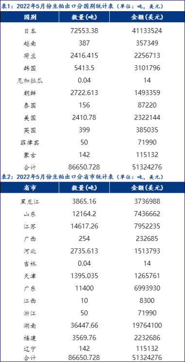 与此同时,按省份进行统计的话,2022年5月中国主要的出口省份在主要是湖南、江苏和山东等。其中换那个出口豆粕数量为36448吨,占比42.06%;江苏出口豆粕为14617吨,占比16.87%;山东出口豆粕12164.26吨,占比14.04%。