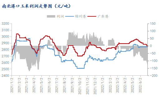 根据Mysteel农产品网数据监测,2月中旬前南北港口顺价,即期利润10-50元/吨,2月中旬后即期利润转负,5月后倒挂幅度拉大,6月底即期利润-130元/吨。
