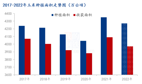 据Mysteel农产品统计,2021年种植面积恢复性正常,达到4350万公顷(65250万亩),较2020年上涨7.59%,玉米收获面积达到4089万公顷(61335万亩),较2020年上涨5.35%。