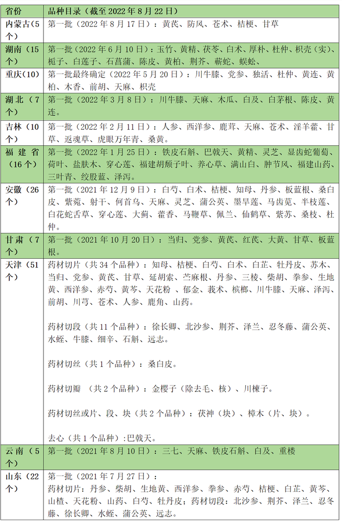 二、《中国药典》(2020年版)收载产地趁鲜切制中药材品种目录