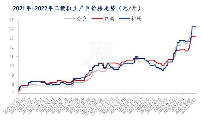 2021年-2022年三樱椒主产区价格走势图