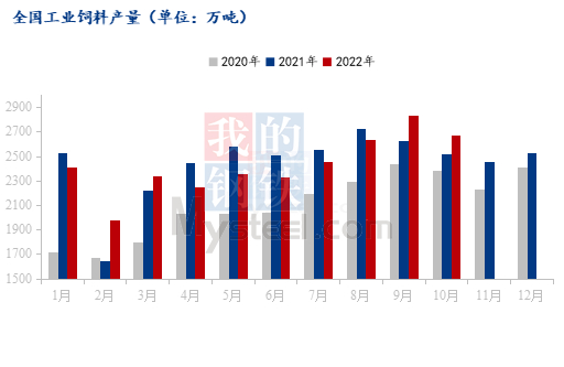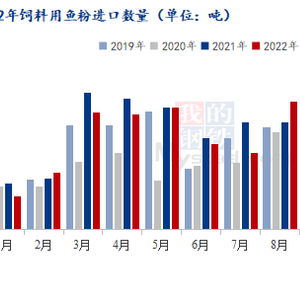 进口方面,进入10月份以来,我国主要港口到货增速放缓,据海关数据显示,10月国内饲料用鱼粉进口量15.4万吨左右,较9月份减少约4.9万吨,环比降幅约24.2%,预计11月比10月进口鱼粉数量会进一步减少。以全年鱼粉进口量来看,2021年我国鱼粉进口量达到182万吨,较2020年增加40.3万左右,同比增幅约28.3%,创历史新高。截至2022年1-10月国内饲料用鱼粉累计156万吨左右,较2021年同期减少2.6万吨左右,同比降幅1.65%,根据往年11月及12月鱼粉进口量增减幅来看,预计今年我国鱼粉进口量会达到180-200万吨之间。