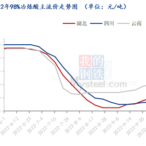 西南地区硫酸市场气氛观望。云南市场区内酸厂前期酸价下跌后,下游暂时维持观望,采购积极性有限,云南市场 98%冶炼酸到厂价格在 480-550 元/吨。四川市场成都、德阳近期疫情反复,硫酸运输虽不限制,但运力受损,运输周期增加。区内硫酸资源无法满足下游需求,外围西北地区冶炼酸运输成本上涨,部分贸易价格有小幅上涨,目前四川地区 98%矿石酸出厂围绕 550-650 元/吨,冶炼酸到厂价围绕 450-550 元/吨。湖北市场下游磷复肥市场受出口配额增加及国内冬储市场陆续启动带动,化肥价格上涨,工厂生产积极性提升。 硫磺价格高位上涨影响下,下游工厂自有硫磺制酸装置成本上涨,外采冶炼酸优势凸显,下游大厂近期陆续有硫酸采购订单签订。目前湖北地区 98%冶炼酸到厂价格围绕 330-400 元/吨。