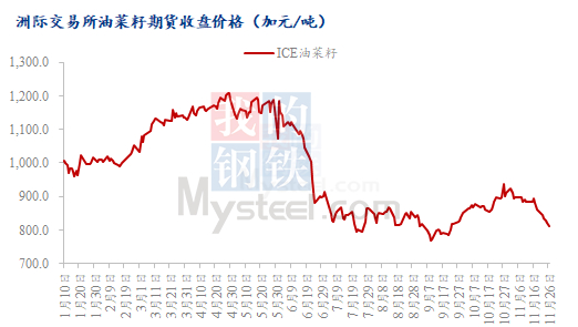 Mysteel解读:ICE油菜籽价格走势及进口菜籽榨利分析