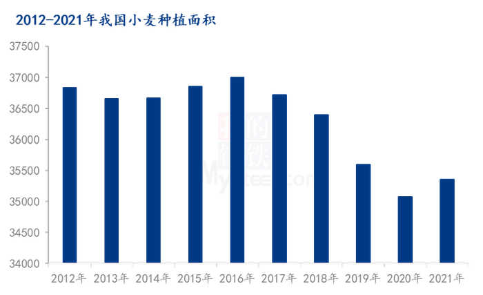 导语:2016年开始我国小麦种植面积呈现逐年递减趋势,2020年落至低位35070万亩。小麦作为口粮,粮食安全问题是重中之重,在国家多方政策调控下,2021年种植面积终于得到扭转,回升至5353万亩,那么今年小麦种植面积能否延续涨势,产量如何?