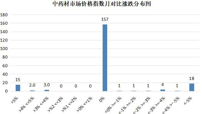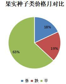 147个果实种子类品规中,价格上涨的品规占18%;降价品规占19%;价格持平的品规占63%。