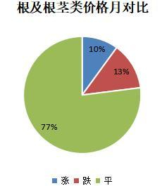 根及根茎类品规中,价格上涨的品规占10%;降价品规占13%;价格持平的品规占77%。