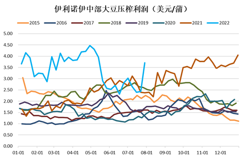图1:美豆油需求预期减弱或令美豆高压榨利润难以维持