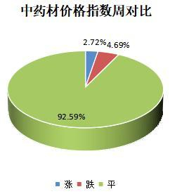 本期大盘品种涨跌环比分析显示,涨价品规占比2.72%;跌价品规占比4.69%;平价品规占比92.59%。目前各地疫情形势依然较为严峻,市场整体走销情况仍不乐观,清热解毒类部分品种随着交易量上升,行情出现小幅上抬。