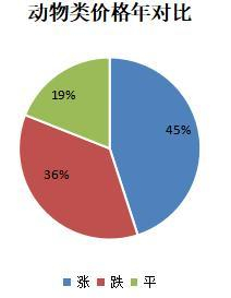 58个动物类品规中,价格上涨的品规占45%;跌价品规占36%;价格持平的品规占19%。