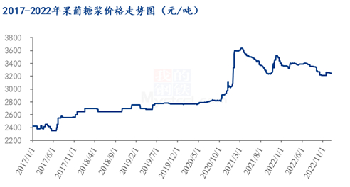 2022年果葡糖浆市场维持先稳后跌行情。一季度果葡糖浆市场整体维持偏弱行情。春节前正值饮料企业集中备货,果葡糖浆需求较好,走货较为顺畅;春节期间市场基本休市;节后归来,由于正处果葡糖浆的消费淡季,加之果糖厂家多在停机就已备好库存,因此厂家的开工积极性并不高,2月底随着玉米淀粉价格的大幅拉涨,果糖厂家挺价意愿明显增强;3月虽然市场有调涨行为,但下旬市场受到新冠疫情的冲击,使得果糖的淡季更是雪上加霜,而2季度长协订单价格并不理想,导致散户单整体偏弱运行。二季度先稳后强运行,由于该阶段不是果糖的消费旺季,而且广东、江浙沪一带的疫情较为严重,终端复工进度慢,影响市场整体对于果糖的消耗。三季度果葡糖浆市场稳中偏强运行,随着饮料消耗旺季的来临,果糖市场购销逐步升温;另外,8月份由于国内多地高温预警,湖北、四川等多地限电,导致供应量出现偏紧状态。原料方面,由于三季度原料签单价持续下降,导致在四季度签长协订单之时价格整体较低。四季度果葡糖浆市场价格整体趋于稳定,由于新冠疫情再次全国范围的爆发,物流运输不畅,叠加本就处于果糖的消费淡季,市场购销偏淡,果糖企业多供长协订单,散户询货较少;且12月份国内防控放开,消费明显下滑,也未有春节备货行为,导致开工低位,价格低位。