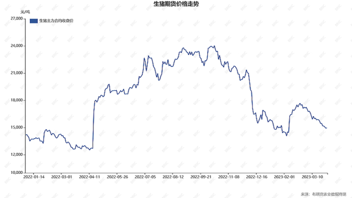 图2:生猪期货价格走势(单位:元/吨)