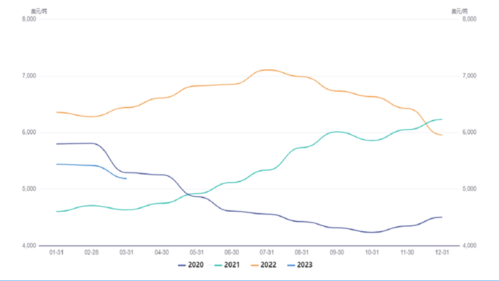 图7:2020年以来牛肉进口均价(单位:美元/吨)