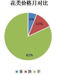 花类品规中,价格上涨的品规占6%;降价品规占12%;价格持平的品规占82%。