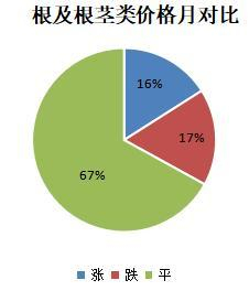 根及根茎类品规中,价格上涨的品规占16%;降价品规占17%;价格持平的品规占67%。