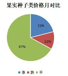 147个果实种 子类品规中,价格上涨的品规占21%;降价品规占12%;价格持平的品规占67%。