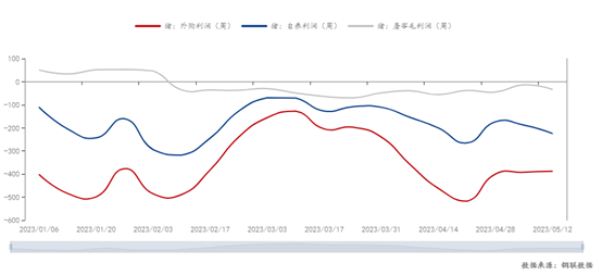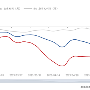 导语:据Mysteel数据显示,截至到5月18日,本周养殖端自繁自养周均亏损231.57元/头,较上周亏损增加7.19元/头;外购仔猪本周亏损370.14元/头,较上周亏损减少了17.81元/头;屠宰端白条毛利润本周亏损30.47元/头,较上周下跌2.99元/头。2023年生猪行业的利润走势如下图所示,可以明显看出除春节前屠宰端利润为正,其他时间段不管是养殖还是屠宰都是处于亏损,而且持续时间较长,到目前为止依旧无明显好转。