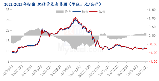 本月全国标肥猪价差均价0.11元/公斤,较上月上涨0.08元/公斤。全国标肥价差进一步拉大。主要原因是市场供应宽松,猪源充足,标猪价格震荡下行,肥猪价格跟跌标猪。据Mysteel 农产品数据调研,2022年5月到12月能繁一直处于增加的态势,叠加母猪性能优化,淘汰落后母猪产能,上半年生猪产能供应充足。据农业农村部数据显示4月份全国生猪出栏同比增长6.7%,环比增长3.1%。各项数据显示,当前生猪依然供大于求。再次是猪肉消费已经进入淡季,各终端市场走货缓慢,消费疲软。Mysteel 农产品数据显示5月屠宰开工率32.20%,较上月下降0.73个百分点。5月中旬开始,国内屠企开工稳中偏弱运行,气温升高,终端消费维持平淡,而屠企冻品库存升高,资金压力慢慢凸显,主动入库操作有所减少,部分厂家也主动缩量保价,开工呈现震荡缓慢下降势头。猪多、肉多,叠加消费淡季,肥猪价格低于标肥。