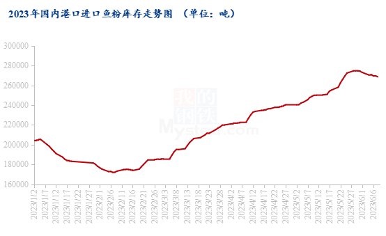 自上周开始,鱼粉市场询价成交逐渐活跃,港口库存呈现下降走势。截止到2023年6月8日,全国各港口库存为26.86万吨,相对上周初下降0.61万吨左右,广州14.16万吨,上海6.57万吨,大连1.56万吨,天津0.13万吨,福建3.91万吨,其他港口0.53万吨。