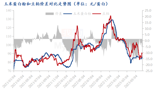 肉鸡方面:目前全国鸡蛋主产品均价为4.09元/斤,白羽鸡苗成交均价在2.27元/羽,受近期618节日影响,虽目前仍处于端午节前备货季,但受多地阴雨天气影响,电商、商超、农贸市场补货数量不多,同时中高考结束,学校陆续放暑假,学校需求将明显减少,而食品企业按需采购为主,短期需求端无明显利好提振,综上从需求角度来看,短期内对于玉米副产品的价格难有支撑。