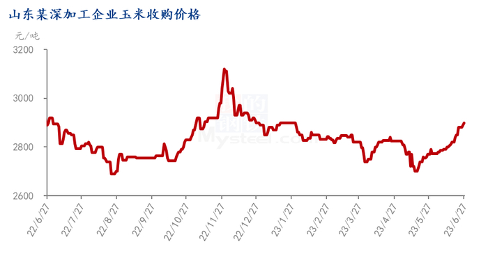 以山东某深加工企业玉米收购价格来看,自5月底玉米价格上调,价格已经从最低价2700元/吨,上涨到目前的2900元/吨,整体上涨幅度达到200元/吨,主要是前期连续降价,导致贸易商出货减弱,加上天气影响,替代品小麦价格也反弹,导致厂家收购价格上调,结晶葡萄糖成本出现明显增加,按照1.43吨玉米出一吨葡萄糖计算,单吨葡萄糖成本增加286。按照山东地区玉米2900元/吨计算,结晶葡萄糖成本达到3760元/吨,目前来看,山东结晶葡萄糖低价仍不足3700元/吨,企业亏损明显。