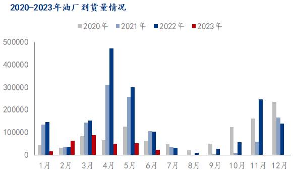 2月,春节过后,油厂入市积极,各工厂到货量陆续增长,与去年同期相比较增长68.22%。
