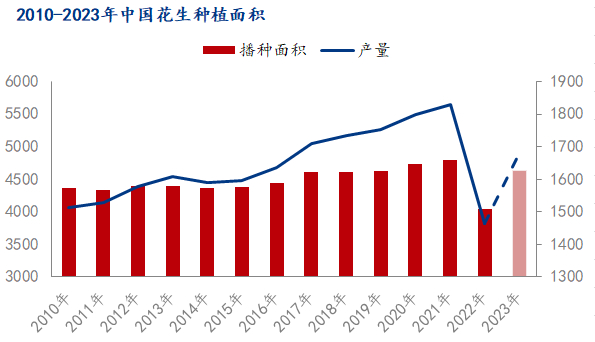 其原因是:1、2022年小麦价格高位运行,农户亩产以及收益整体表现良好的背景下,多数在8-9月份选择种植小麦,导致没有太多的空地留给春花生。2、河南部分产区退林还耕,春花生面积有小幅增长。3、2023年花生收益与去年相比增长明显,普遍反映麦茬花生种植意愿增加。