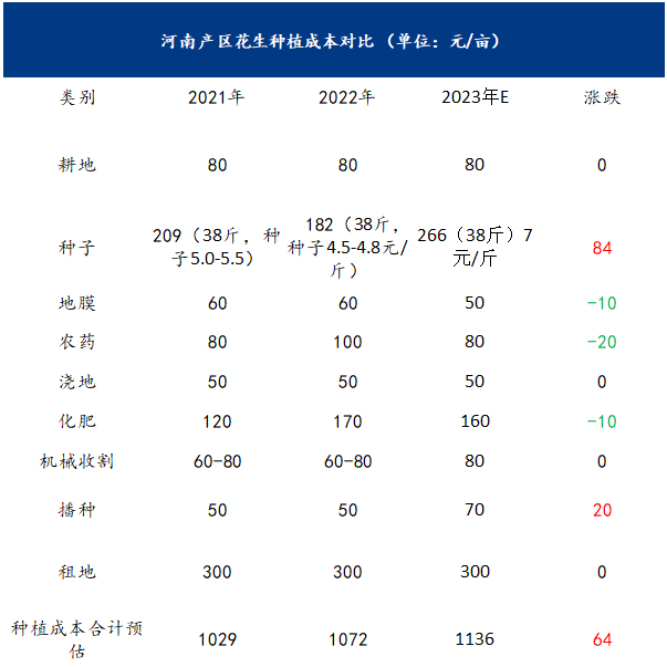 3.据调研,吉林产区花生种植地租成本明显高于华北、华中地区。当地种植普遍为规模化种植,2023年花生种植收益良好使得租地价格上涨。