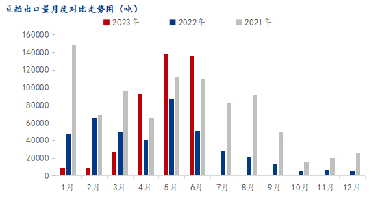 据海关总署公布数据显示,中国2023年6月豆粕出口量为135622.342吨,较2023年5月份减少2732.156吨,环比减幅1.97%;较去年同期增加85496.727吨,同比增幅170.56%。6月进口大豆量持续较高,国内油厂豆粕产出充足,6月国内豆粕出口量继续维持10万吨以上高点。今年上半年我国出口豆粕量为406352.434吨,较去年同期的341138.572吨增加19.12%。