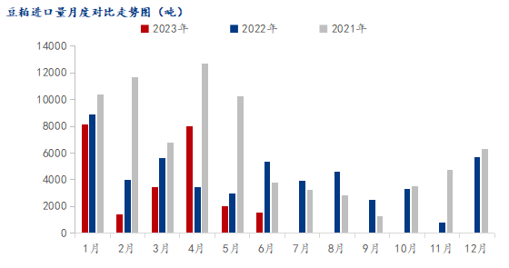 据海关总署公布数据显示,中国2023年6月豆粕进口量为1526吨,较2023年5月份减少470.324吨,环比减幅23.56%;较去年同期减少3798.936吨,同比减幅71.34%。6月国内油厂开机仍保持高位,国内市场豆粕供应充足,使得6月豆粕进口量继续下降。今年上半年我国进口豆粕量为24517.68吨,较去年同期的30268.463吨减少19%。
