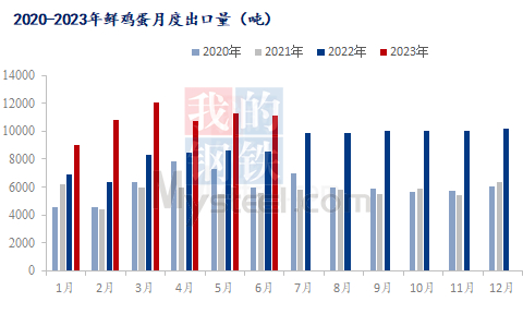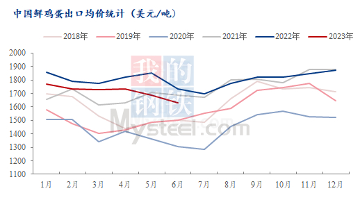 Mysteel解读:2023年上半年鲜鸡蛋出口总量同比增加,出口均价同比下降