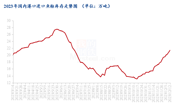 鱼粉港口库存继续攀升至21万吨以上,截止到2023年12月12日,全国各港口库存为21.42万吨,广州14.03万吨,上海3.82万吨,大连0.26万吨,天津0.03万吨,福建2.77万吨,其他港口0.51万吨。
