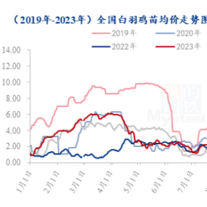 在2023年中,全国鸡苗均价最高涨至6.10元/羽,价格推涨至高位的原因:一方面,因2022年12月份至2023年1月份期间,多家种禽企业出现了淘汰老周龄父母代种鸡、父母代种鸡强制换羽、种蛋转商品蛋等情况,使得父母代在产存栏出现了减量,种蛋供应量不足,且父母代换羽种鸡尚未完全恢复开产,叠加此阶段新开产种鸡量不大;由此影响至市场鸡苗供应量偏紧;另一方面,养殖端前期长达2个多月的持续亏损,主产区内养殖空棚率较高。随着新冠病毒阴霾消散,养殖端开始恢复正常补栏,种禽企业排苗计划较快;同时,因毛鸡价格频频上调,养殖端盈利可观,补栏积极性得以带动。综合多方利好因素支撑,鸡苗价格顺势涨至高位。