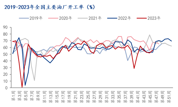 据Mysteel农产品对国内主要油厂的跟踪调研了解,2023年前10个月豆油产量1356.51万吨,较2022年(1346.37万吨)增加10万吨,增幅0.75%,而11-12月份大豆到港量较大,产量预期良好。