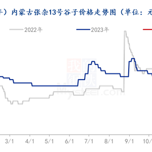 据Mysteel农产品数据显示,2023年10月谷子均价2.47元/斤,环比减少5.36%,同比减少3.89%,11月谷子均价2.4元/斤,环比减少2.83%,同比减少5.44%,12月谷子均价2.44元/斤,环比增加1.67%,同比减少2.79 %。四季度谷子价格先弱后涨,2023年四季度内蒙古赤峰市张杂13号谷子装车均价为2.44元/斤,环比暂无波动,同比减少3.94%。